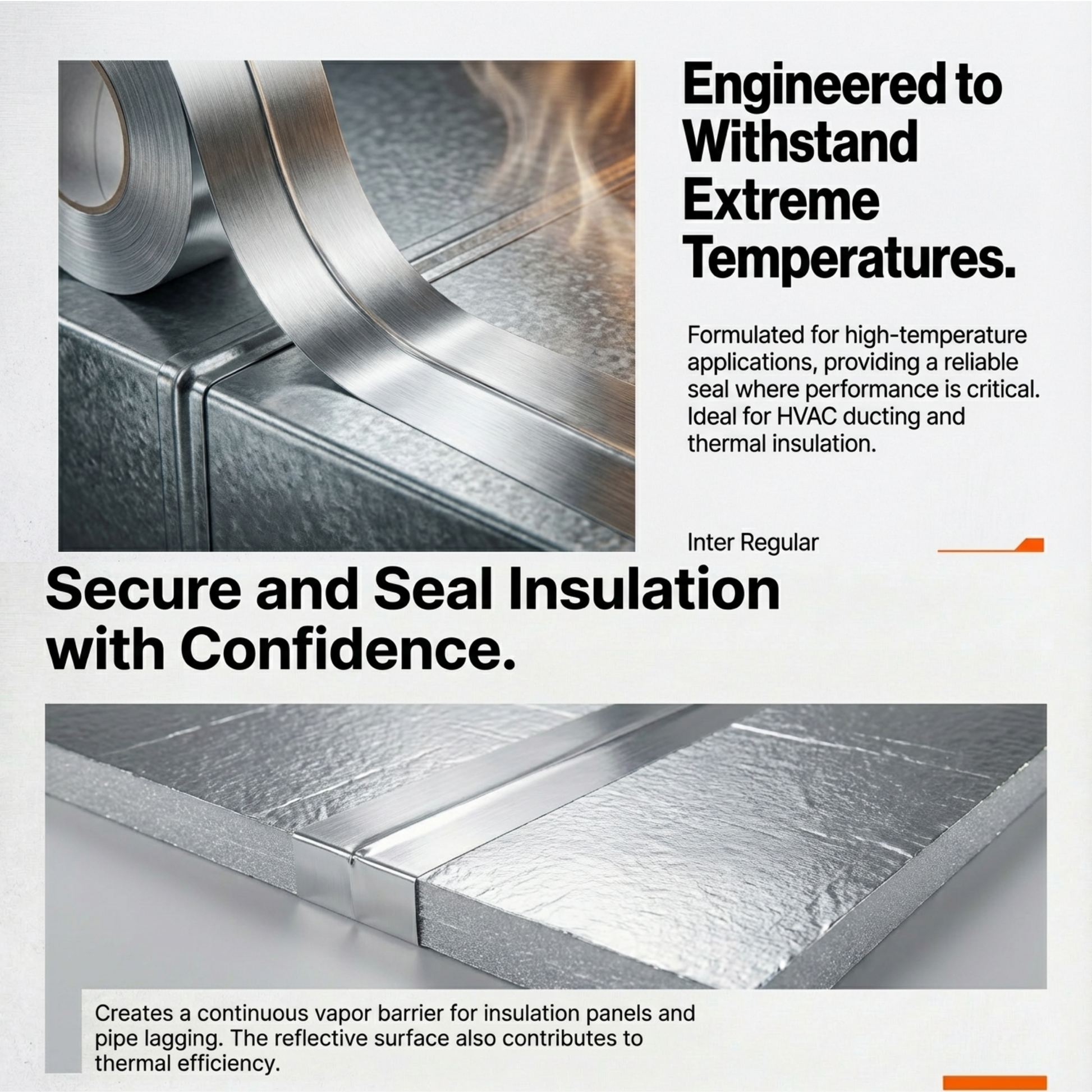 - Heat Resistant Aluminium Foil Tape: This heat resistant tape performs reliably from -20°C to +120°C, making it ideal for heating and ventilation (HVAC) duct work, insulation applications and demanding temperature environments.